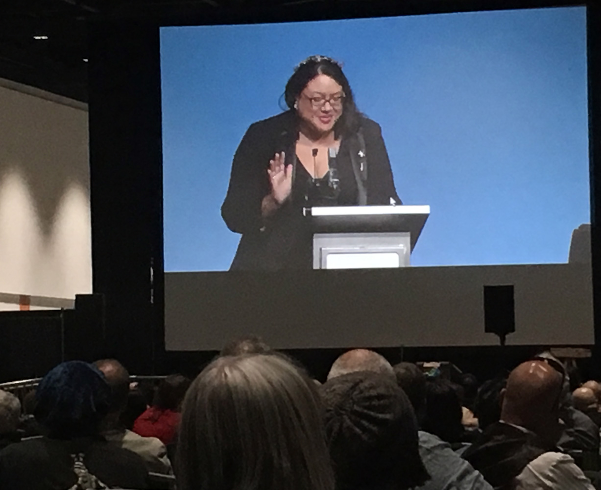 This is Rebecca Roanhorse, who is both a woman of color and of the Native Peoples. She won two awards that night!